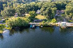 LAKEFRONT stunning Queen Anne 1880 Victorian with sweeping lake views and 200' direct waterfront with decks and docks! Gracious entry between stone pillars brings you to privately sited charming country home with incredible wrap around porch. Perched on an elevated and private knoll overlooking Highland Lake, the property offers extensive waterfront for docking boats, plenty of room for lakeside lounging, water toys, picnics, fishing and swimming. Well-loved home in meticulous condition with many recent upgrades. Gracious main floor living spaces - livingroom, diningroom and familyroom each with fieldstone fireplaces, country kitchen with light-filled breakfast area. Original oak paneling, mouldings, stonework, hardwood floors, and five-panel doors. Three private acres of gardens, terraces, outbuildings, and sleeping cottages. Underground water and electric to rear outbuildings. Ring cameras, 50 AMP EV Charger, Generator, Newer Roof, Newer HVAC, Total of 4 parcels, two boat docks,